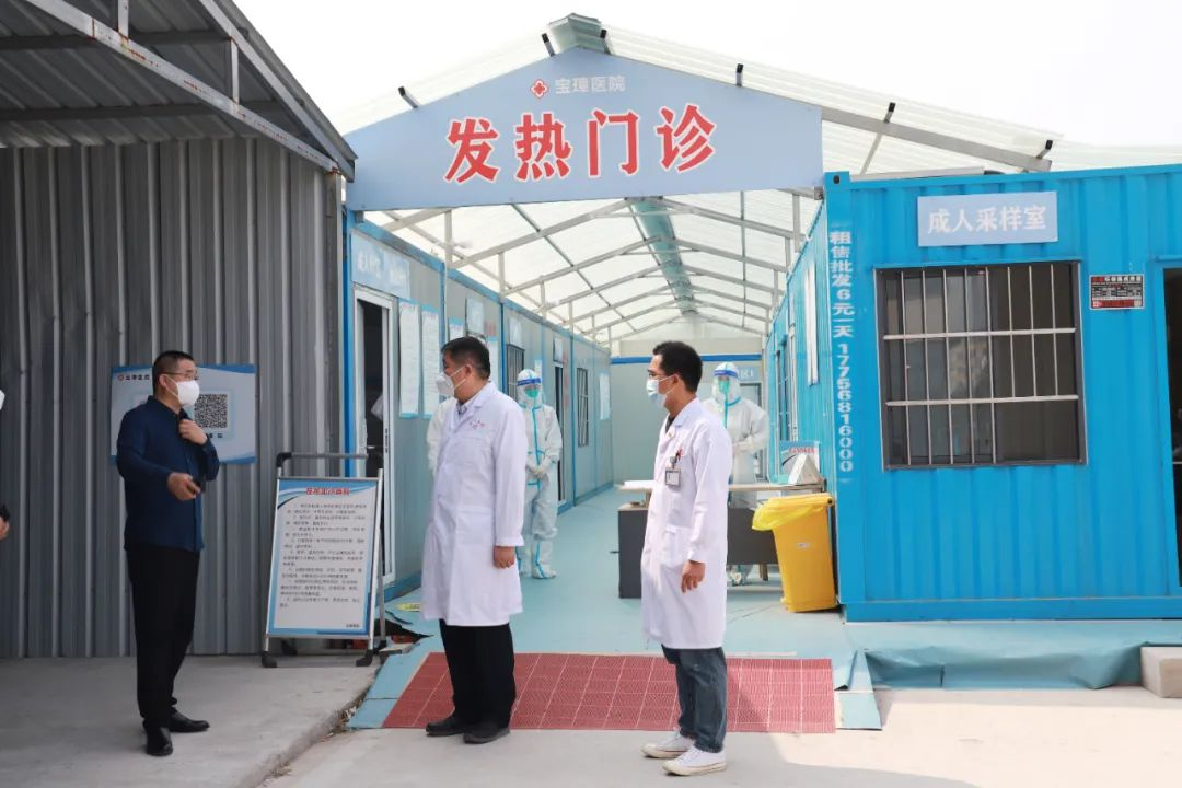 4月19日上午,利辛县卫健委主任樊利光、副主任郭灿灿,医政科科长陈玮莅临我院开展疫情防控督查指导工作,就预检分诊、发热门诊工作进行了详细的检查和指导,宝璋医院执行院长苏波、护理部主任朱洪阳、感染管理科主任安雪琴陪同检查。